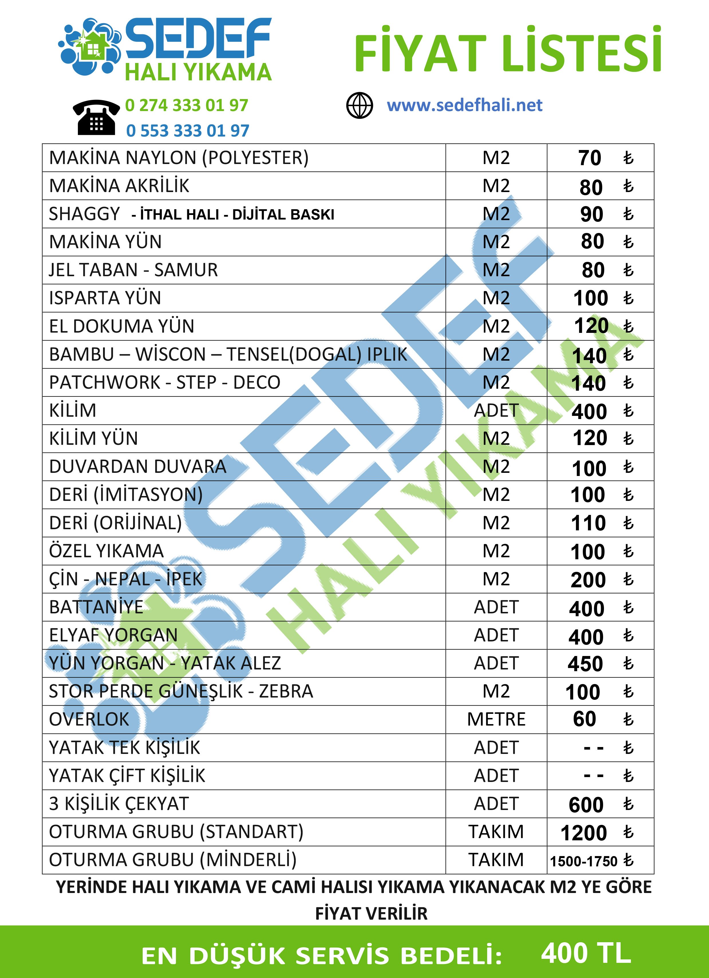 Kütahya'da Halı Yıkama Sektöründe halkımıza hizmet vermekteyiz. Her türlü halı, kilim, yorgan, battaniye türünden ev eşyalarınızın itina ile temizliğini yapmaktayız. Ücretsiz servisimize telefon ederek temizlenmesini istediğiniz eşyalarınızı bildirebilirsiniz.